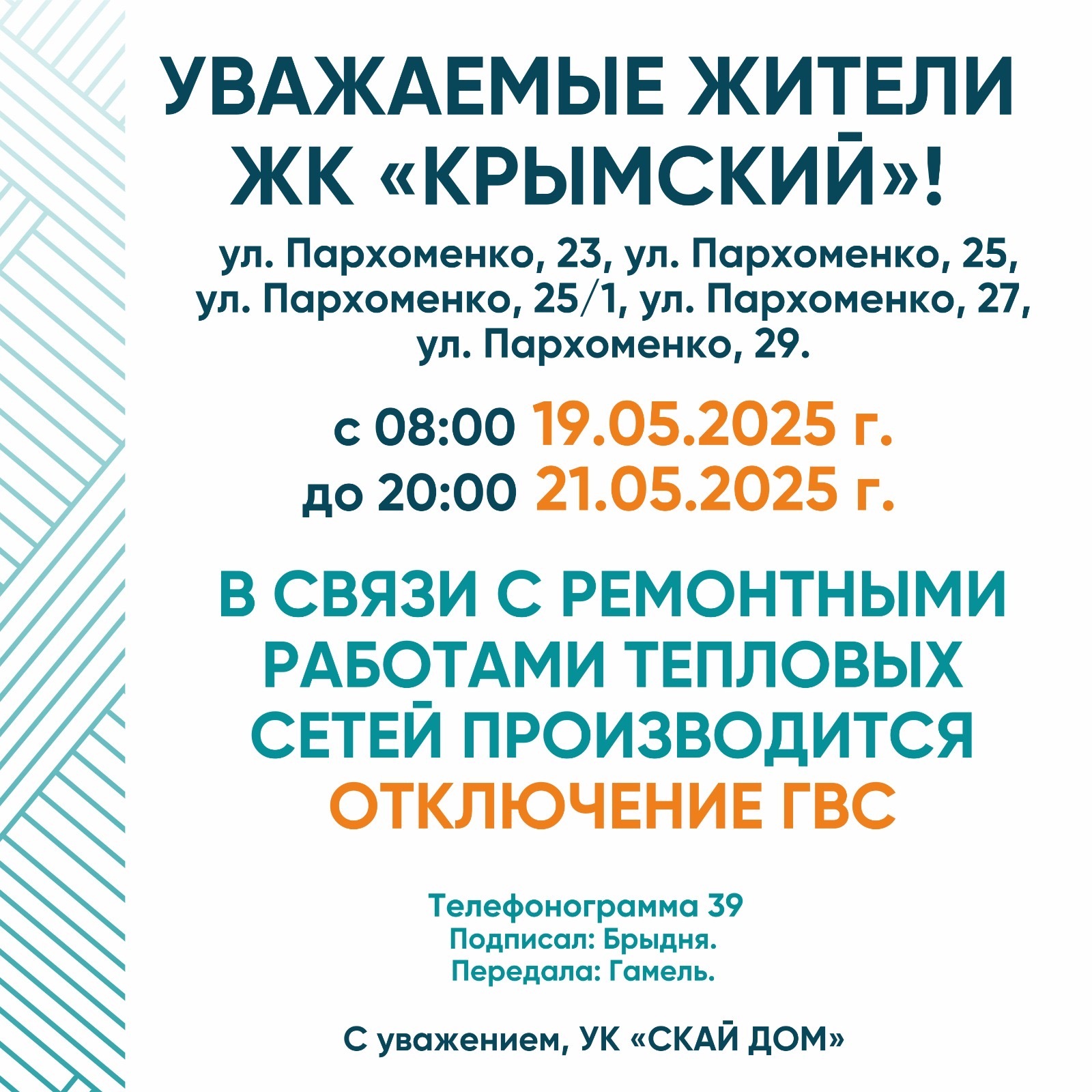Информация для жителей ЖК КРЫМСКИЙ